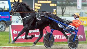 Robbin Bot führt den Germania-Hengst im 20.000-Euro-Hauptrennen zu einem überlegenen Triumph. In der Newcomer-Serie präsentiert sich der von Danny Brouwer gesteuerte Pleasure Transs R ebenfalls bärenstark.